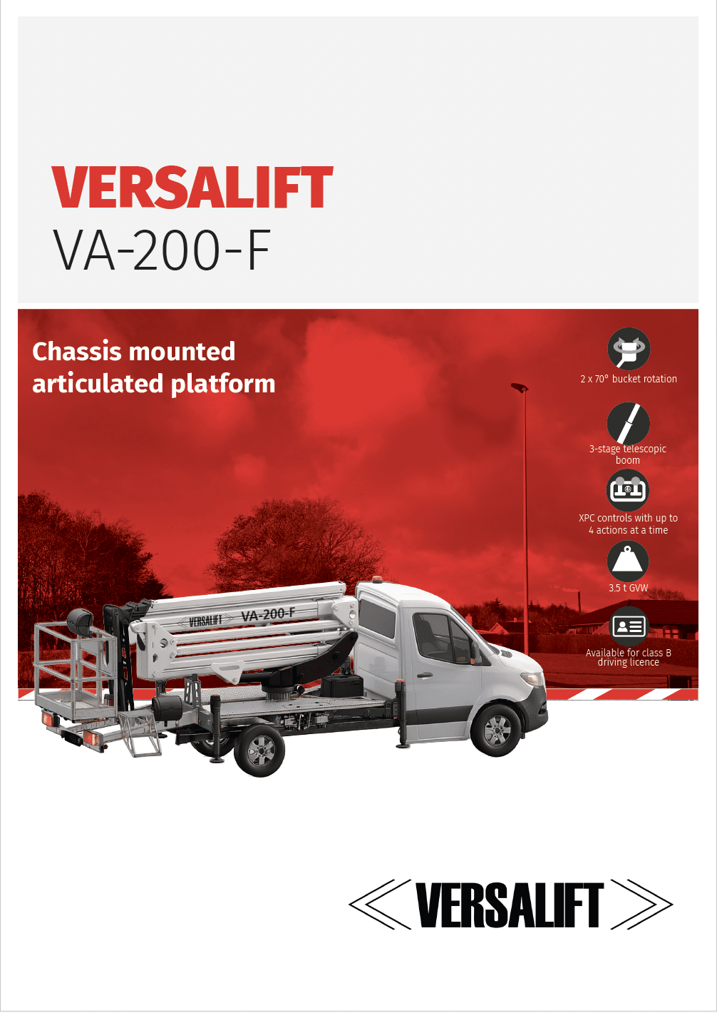 The VA-200-F is equipped with Versalift’s fully standardised XPC system, ensuring a consistent and intuitive operating experience. Once operators are familiar with the controls, they can confidently operate any model within the V-Range, making day-to-day use seamless across mixed fleets.