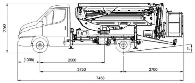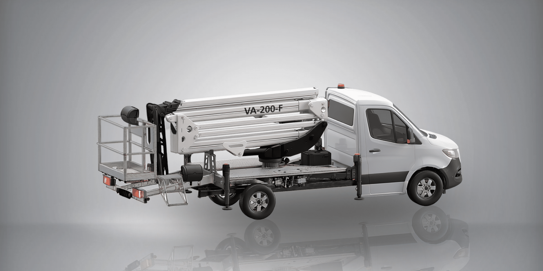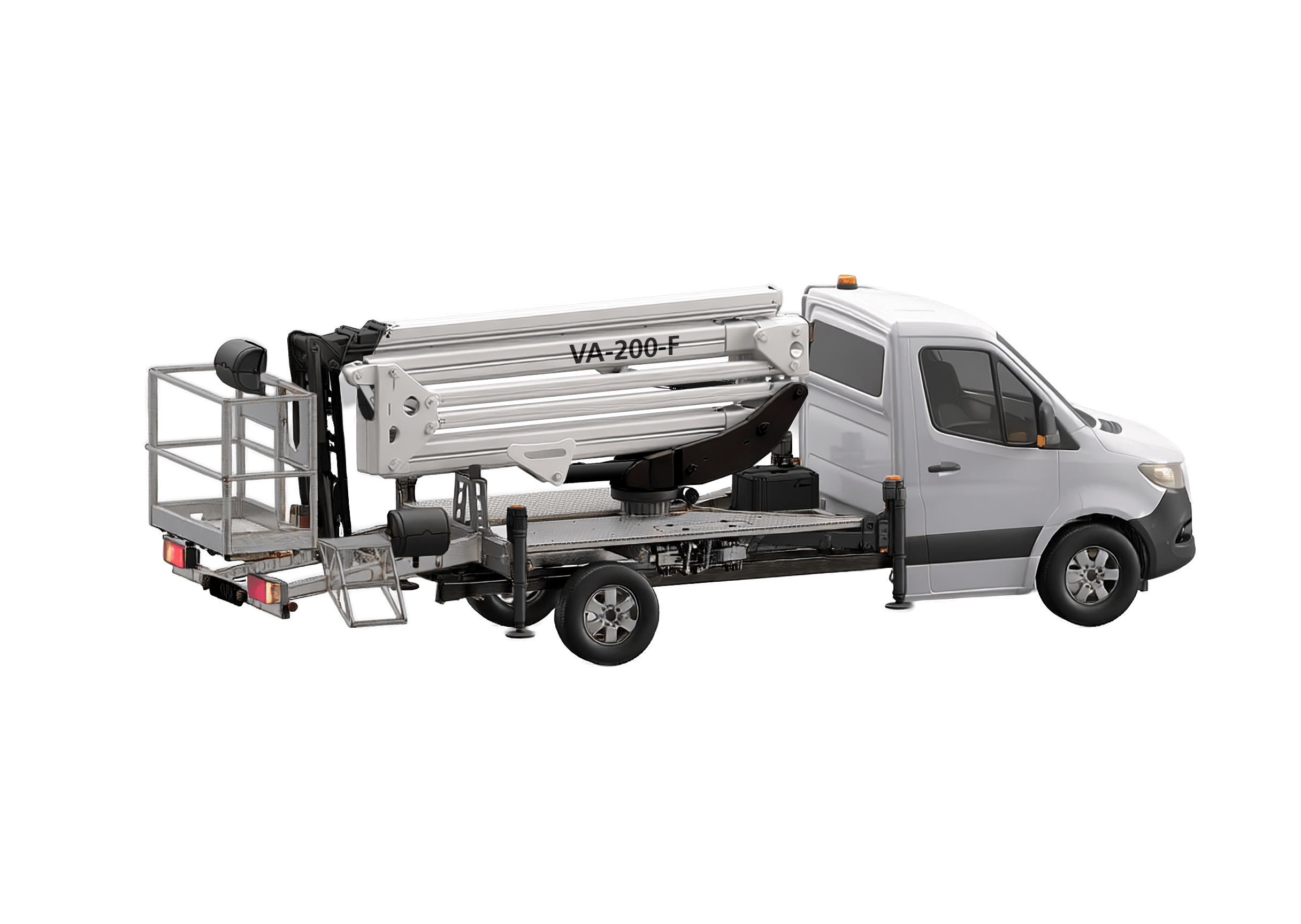 The VA-200-F is available on 3.5-ton chassis options, including the Mercedes-Benz Sprinter and Iveco Daily, offering flexibility depending on operator preference and application requirements.